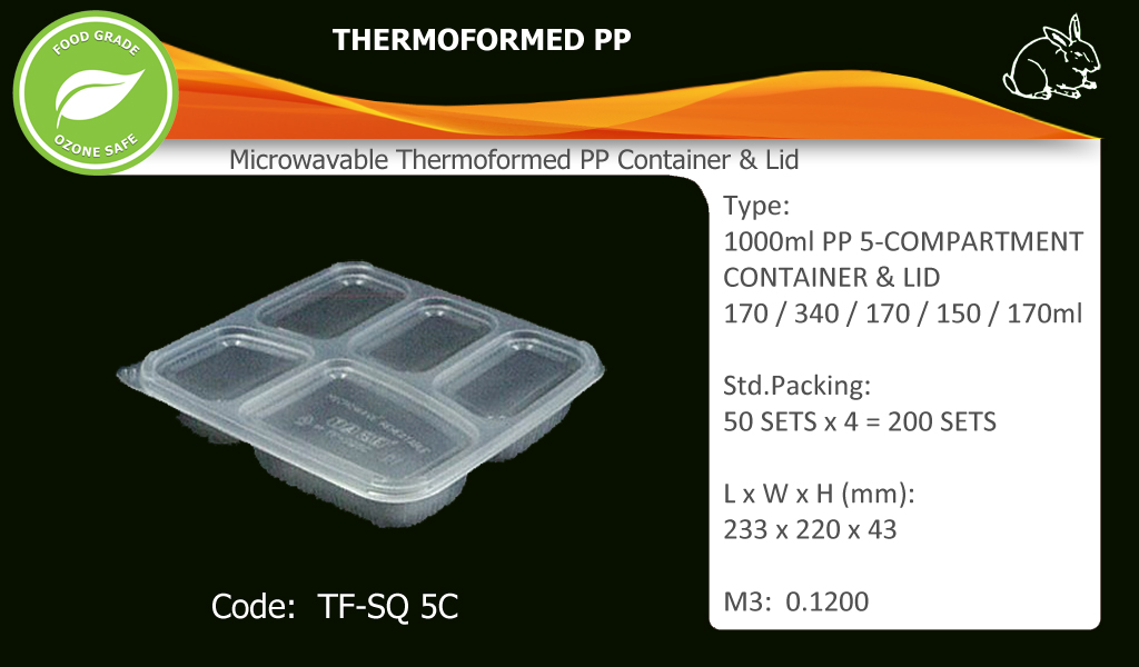 5-Compartment Container c/w LidCode: TF-SQ 5C